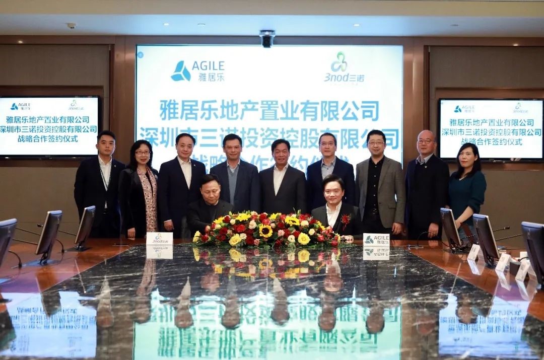 1月15日在雅居乐集团总部,三诺集团与雅居乐集团签署战略合作框架协议,这标志着双方正式搭建优势互补、资源互通的合作伙伴关系。