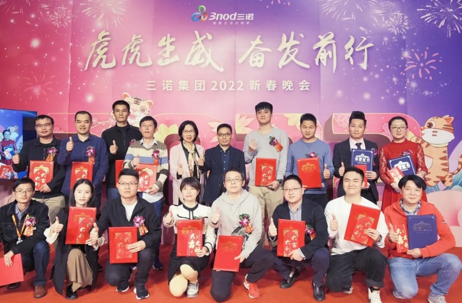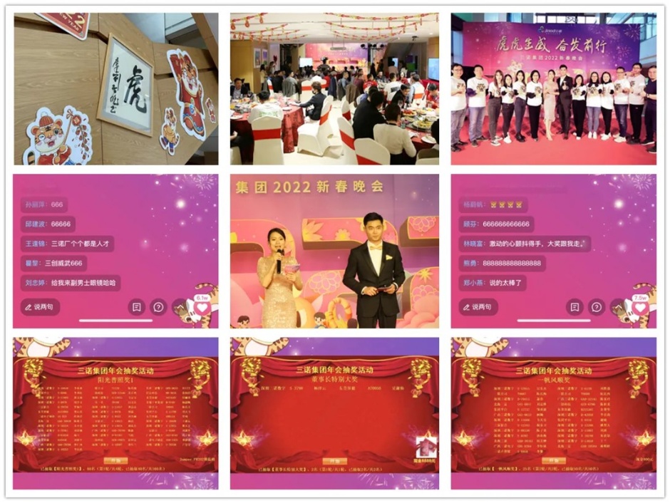 美好的时光总是转瞬即逝,三诺集团“虎虎生威 奋发前行”2022新春晚会完美收官,大家纷纷点赞三诺云春晚打破了传统年会的时空阻隔,让员工在安全的前提下,通过技术手段无界互联,参与感高、互动性强,营造了团圆三诺年的创新、热闹、喜庆年味,成为全体三诺人难忘的年味记忆。2022,让我们泰然自若,与自己的时代狭路相逢吧!祝福祖国繁荣昌盛,国富民强;祝福三诺集团宏图大展,财源广进,如虎添翼,虎虎生威;祝福三诺人身体健康,工作进步,虎跃龙腾,虎年大吉!