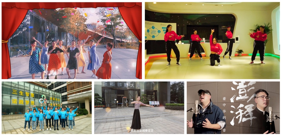 线下舞台同样精彩。主持人青春靓丽,台风大气。形式多样、内容丰富的视频节目让人惊喜和赞叹,获得大家的一致认可。由各部门精心准备的节目虽在线下录制完成,但结合三诺各园区的特色场景,更凸显出别具一格的韵味。声智联舞蹈《炫动青春 舞动虎年》、广西三诺合唱《海阔天空》、信息科技舞蹈《失联阵线联盟+秒针》、集团总部独舞《智慧花开》、工业设计中心麦锡设计歌曲《我的中国心》等节目轮番登场、精彩连连,将三诺人的才艺特长和青春活力展现得淋漓尽致。