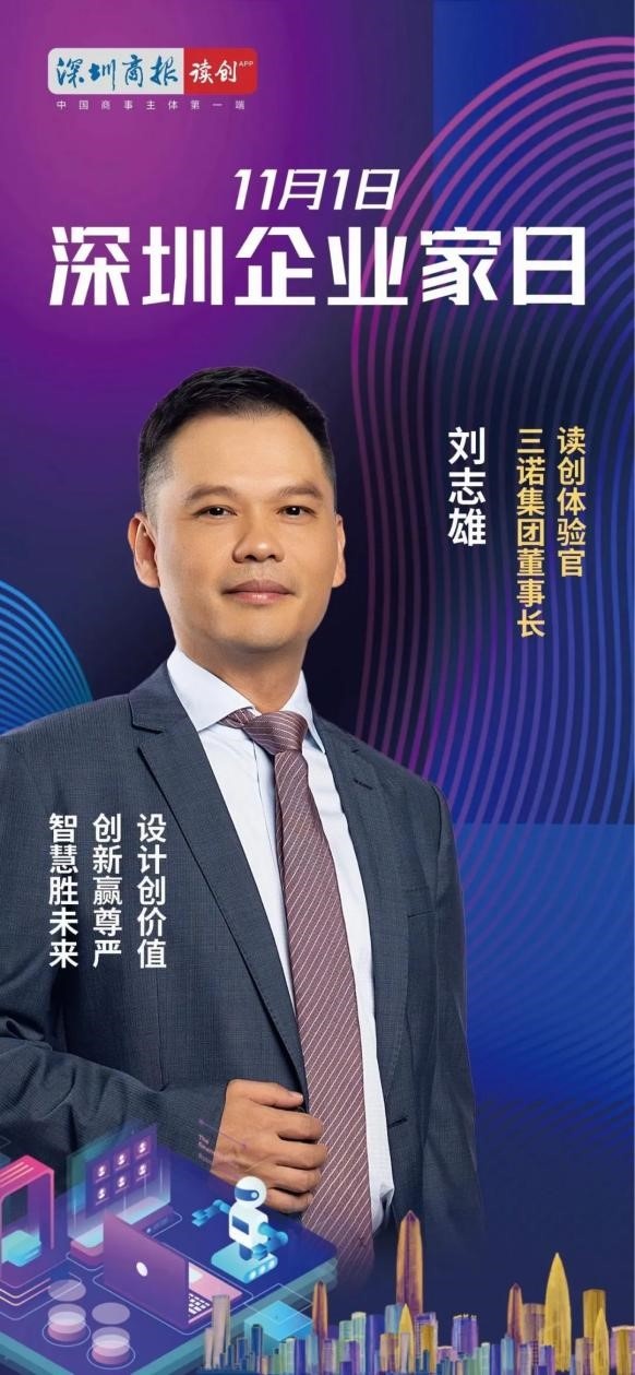 11月1日深圳企业家日,三诺集团董事长刘志雄应邀成为深圳商报“读创”APP体验官。