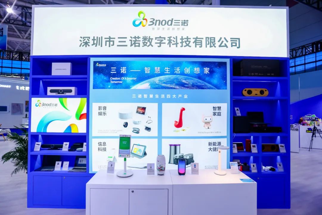 此次三诺数字参展的科创产品颜值高、品质好、科技含量足,主要包括带炫目灯光效果的便携式蓝牙音箱、为PC游戏玩家打造的创新音响系统、陶瓷版AI音箱、带屏智能音箱、AI智能音箱、蓝牙音箱、智能无线耳机、TWS ANC降噪耳机、智能全向麦克风、会议音箱、视频会议一体机、创新的智能收银设备、智能音频眼镜、智能手表等,融合了科技创新与智能制造、物联网技术的成果,向人们展示了科技与文化碰撞后带来美好生活的无限可能。众多参展产品还获得过设计大奖和技术大奖。
