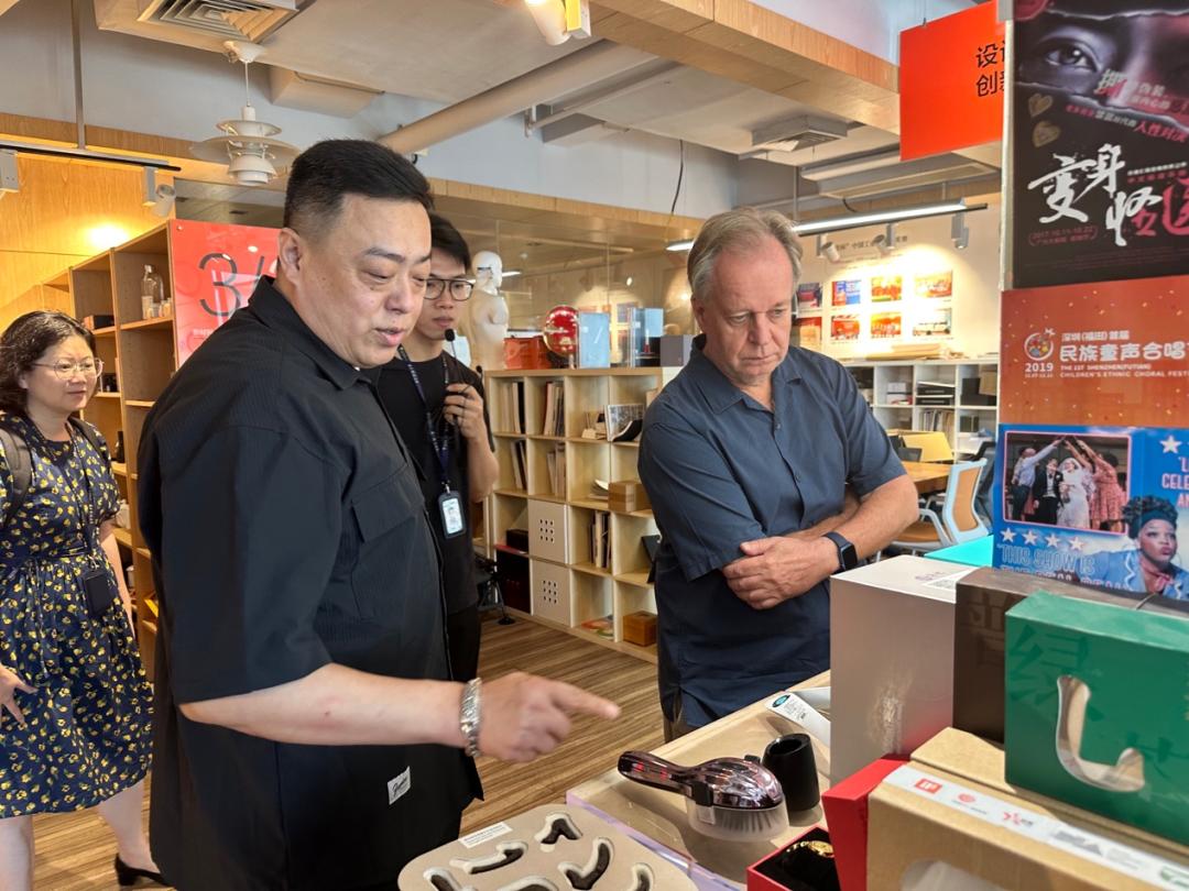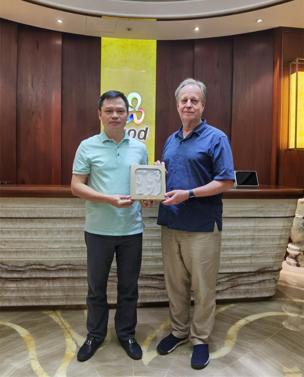 三诺集团董事长、CEO刘志雄与南科大设计学院院长关道文互赠礼物