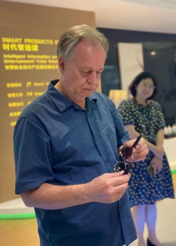 南科大设计学院关道文院长试戴智能音频蓝牙眼镜