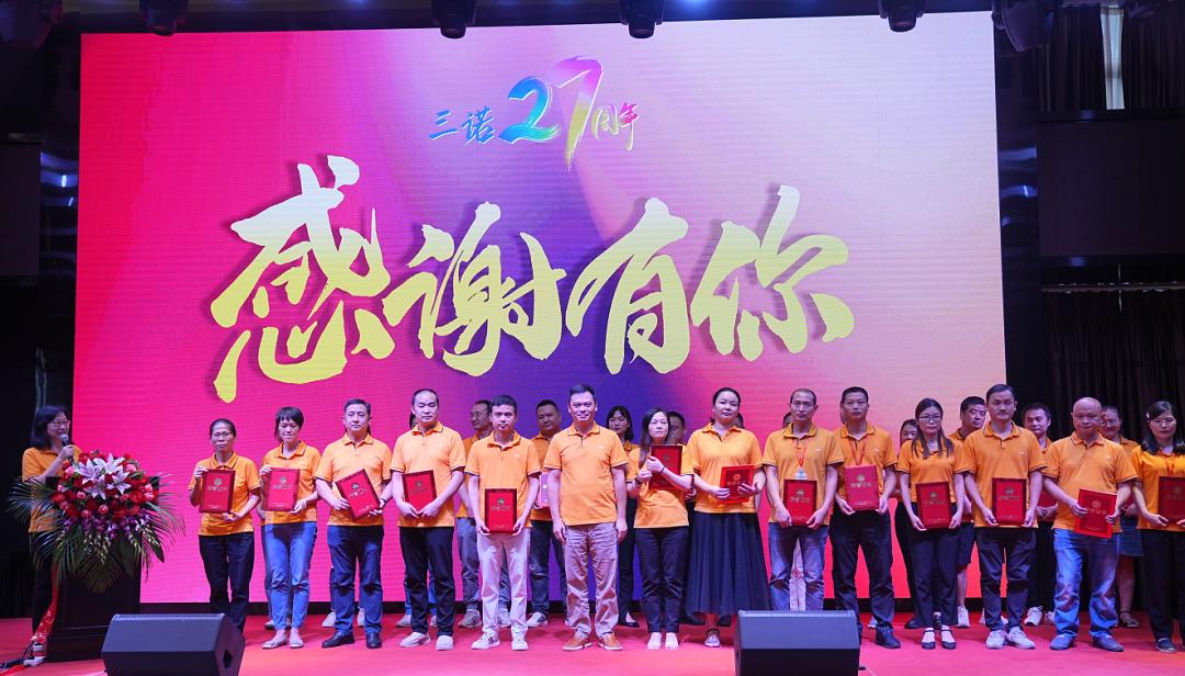 大会对集团10周年以上老员工进行了表彰。老员工是公司的守护者和基本盘,感恩三诺所有老员工的辛勤付出与不断奉献,也期待老员工能以老带新,新老融合,与公司的新生力量共同努力,为公司持续高速发展保驾护航。