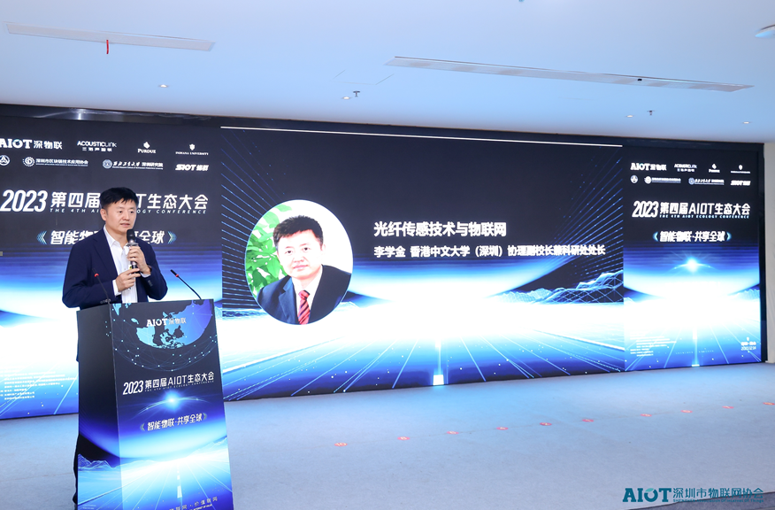 香港中文大学(深圳)的协理副校长兼科研处处长李学金教授分享了《光纤传感技术与物联网》。