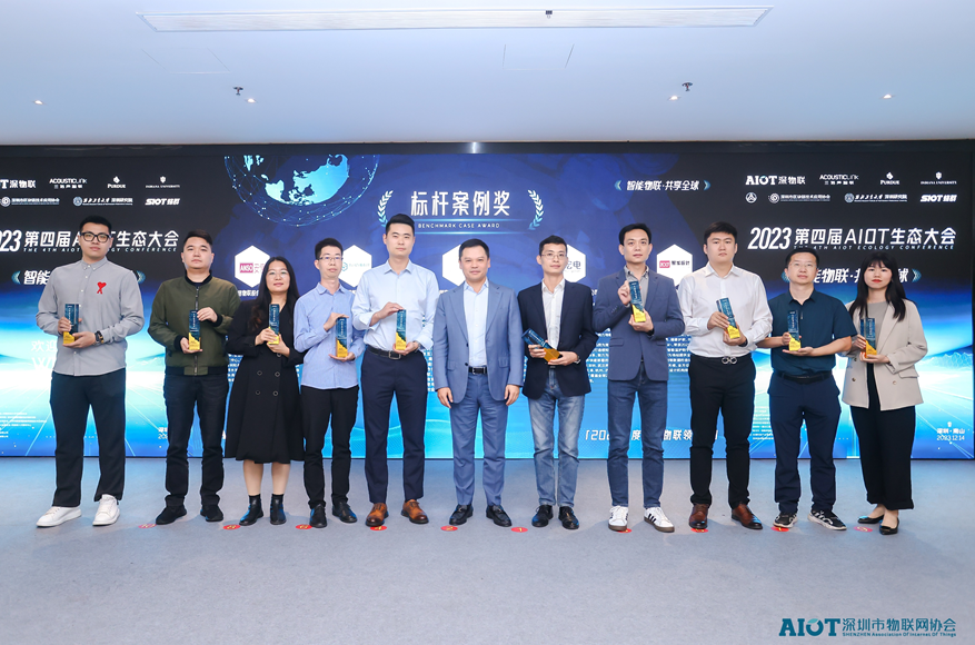 深圳市物联网协会会长、三诺集团董事长刘志雄为“标杆案例企业”代表颁发水晶杯