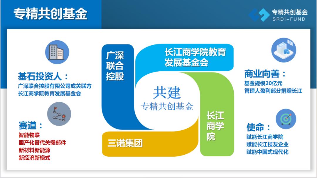 他重点介绍,长江·专精共创基金除了投入资金以外、还要投资源、投产业生态、投企业家智慧。基金旨在帮助创新创业的校友更好地成长和成功,它通过资本和产业的支持,紧密链接长江校友企业,提升长江教育发展基金会的规模和影响力,并反哺到学院的建设和发展。该平台不仅打造一个开放分享、传承互助的生态圈,还弘扬长江商业向善文化,以长江生态助力中国式现代化建设,推动新的商业文明和创业创新生态的发展,形成长江前浪带后浪、长江后浪推前浪、循环回馈生生不息的壮美图景!