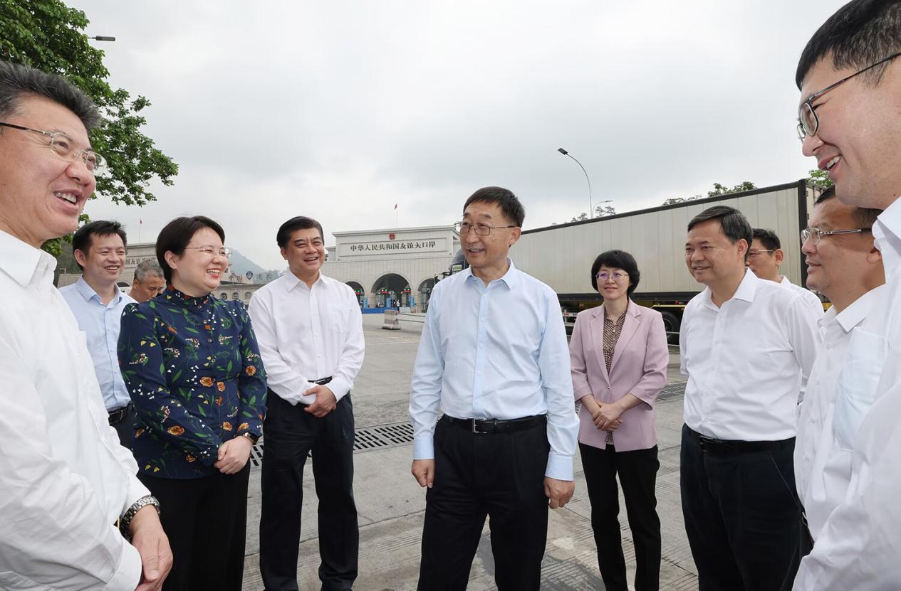 在凭祥友谊关货运通道,刘宁实地考察货物通关便利化发展情况。这条货运通道也是三诺跨境电子产业示范园凭祥和越南两地园区的重要通道