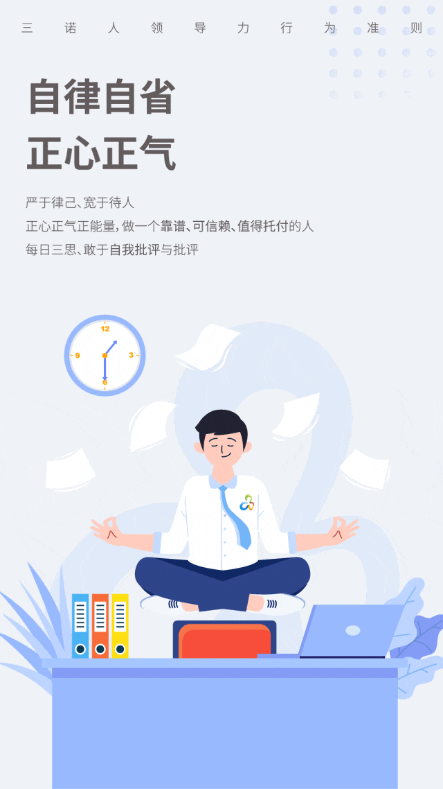 3、弘扬自我批评与批评的文化:每日三思、自我批评,不断地自我修炼、自我超越;勇于谏言,从帮助他人、改进工作的角度提出正向批评。