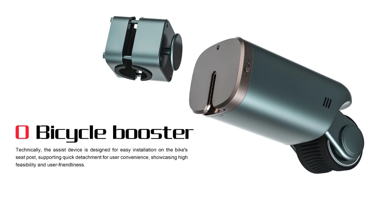 这款创新的自行车助力器,兼具潮流外观与便捷性。其设计融合现代审美,通过流线型造型与鲜明色彩搭配,增添骑行的时尚感。技术上,助力器安装于自行车座杆,支持快速拆卸,方便用户根据需要进行装卸,体现了优秀的实现可能性与用户友好性。功能方面,助力器提供平稳而有效的辅助动力,优化骑行体验,满足操作、安全性及维护的所有要求。此外,设计注重情感连接,通过增强骑行乐趣与便捷性,让用户在享受科技带来便捷的同时,也能感受到与众不同的个性表达。本产品设计不仅旨在提高骑行效率,还致力于通过其独特性和功能性,为用户和社会带来积极的影响。