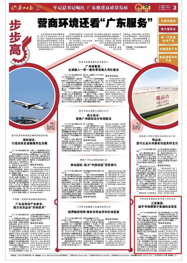 2月27日,《广州日报》在重要版面刊登《营商环境还看“广东服务”》一文,聚焦三诺推进高质量发展。