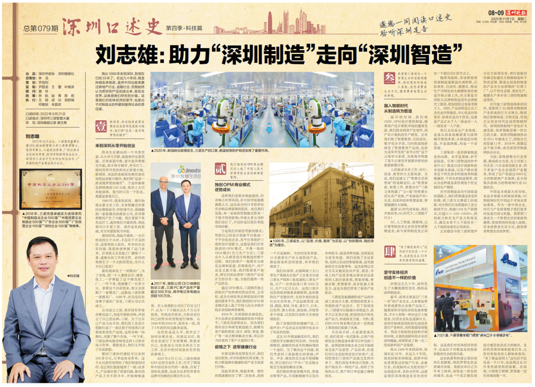 我从1989年来到深圳,到现在已经33年了。在这几十年间,我坚持做实体制造,虽然中间也曾羡慕过房地产行业、金融行业,但我始终认为把好的产品创造出来,卖给全世界,这就是我们存在的价值。这是我们对实体经济的坚守,也是出于对制造业的热爱和服务社会的责任感。
