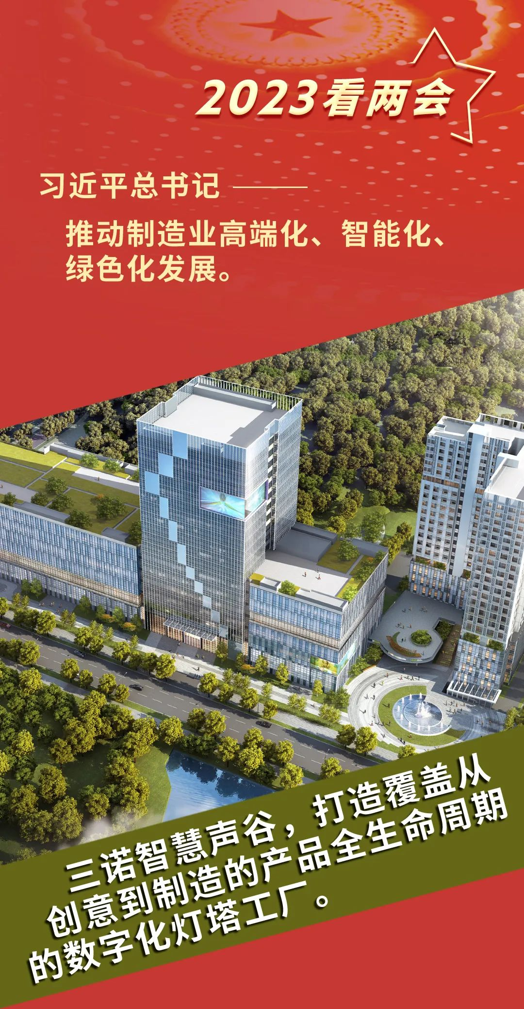 27年耕耘,三诺从未停下脚步。面向工业4.0,三诺投资超10亿元,在深圳宝安建设“工业元宇宙”新型产业园——三诺智慧声谷。相较于传统工厂,三诺智慧声谷将打造建筑面积超10万平方米、高100多米、长200米以上的“垂直工厂”,实现“工业上楼”,通过覆盖从创意到制造的产品全生命周期工业4.0灯塔工厂,构建可实现“规模化定制”的智能制造平台和柔性化生产示范基地。待到正式运营时,三诺智慧声谷将采用C2M生产新模式,打通从0-1-100-10000+的全过程环节,满足未来产品千人千面甚至一人千面的场景化应用需求,做到高品质、高效率、低成本、弹性交付。另外三诺智慧声谷将以工业互联网平台打造可链接上下游资源的“软+硬”“云+端”创新实践基地,推动产业链与创新链结合。三诺智慧声谷参考国际通行的环保认证标准,遵循绿色低碳设计要求进行建设。建成之后的三诺智慧声谷,将是集“生产、生活、生态”于一体的产业载体空间。作为备受期待的灯塔工厂,三诺智慧声谷项目入选了《深圳市2021年重大项目计划》,目前正在紧锣密鼓的建设中。刘志雄表示,三诺的高质量发展就在于推动三诺制造走向三诺智造,声谷项目是三诺智造走上高端化、智能化、绿色化发展之路的一个重要抓手。通过智慧声谷,三诺以场景化用户需求为导向,转型柔性化、数字化、智能化的新型智造模式;同时,作为智能制造平台,智慧声谷将以大规模定制化生产,为国内新品类崛起和品牌出海助力。三诺有信心,在2025年将声谷打造成为中国智能制造工厂的标杆。