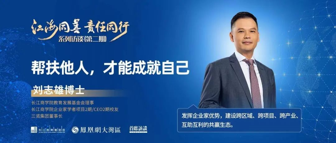 前行者善心前行,后来者感恩而往。长江商学院教育发展基金会、凤凰网广东《首席访谈》栏目组联合推出《江海同善,责任同行》专题,对话长江商学院优秀校友及特别贡献者,记录和传播企业家善心善行,影响有影响力的人。