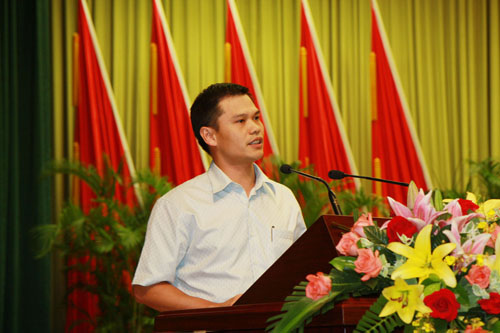 三诺电子有限公司董事长刘志雄作为二位区长奖获得者之一,代表获奖企业在大会上发表了热情洋溢的感言。