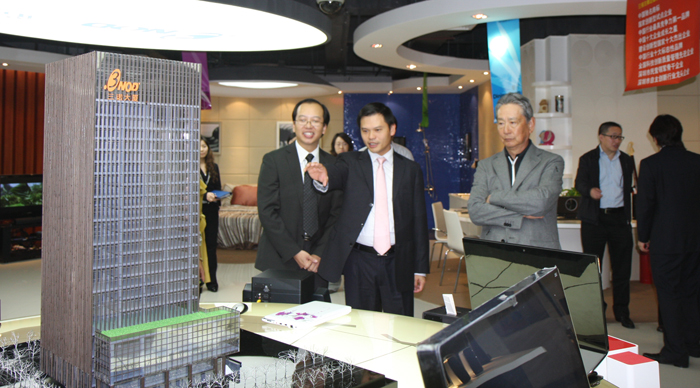 三诺董事长刘志雄向索尼前董事长出井伸之介绍筹建中的三诺大厦