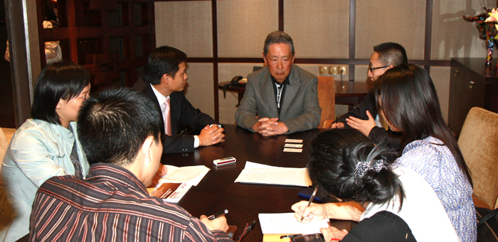 三诺集团董事长与索尼前董事长出井伸之一起在洲际酒店接受多家媒体专访