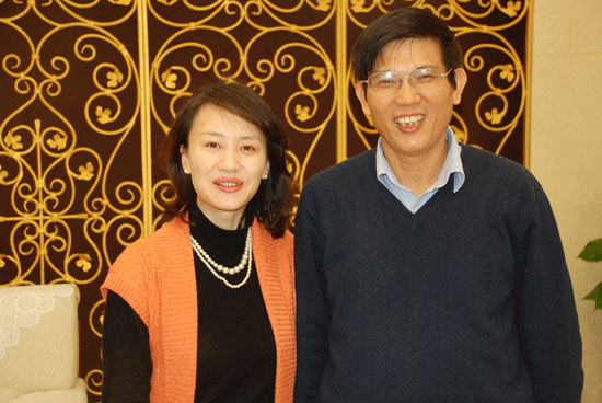 李菲(左)与人民网副总裁官建文(右)合影