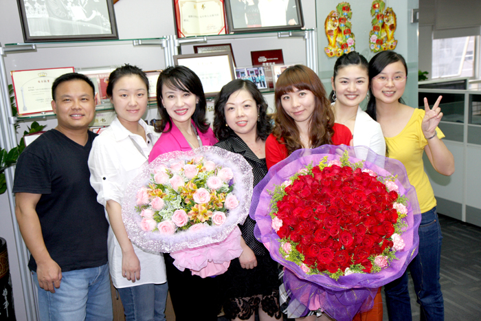 3月3日下午5时,三诺集团总部的副总裁室欢声笑语,热闹非凡。原来,这里正在举办三诺副总裁李菲的生日会。七彩的花束将办公室装扮得漂亮而温馨,大家一起为李菲送上生日祝福,并争相与这位明星副总裁合影。在大家真诚的祝福中,李菲脸上绽放出灿烂的笑容,“这是我今年收到的最珍贵的礼物,谢谢大家。”生日会现场笑声阵阵,其乐融融。