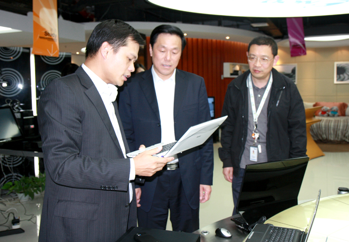 随后,钟书记一行来到三诺集团总部,刘志雄董事长向钟书记简要介绍了我司的发展历程、经营情况以及三诺大厦的建设规划,钟书记对三诺13年来所取得的成绩、“品质、服务、价值”的核心经营理念以及OPM的商业模式表示赞赏。在总部数字智能音乐体验厅,钟书记饶有兴趣地驻足参观了三诺数字智能家装系统以及最新研发的音频、笔记本、LED新能源等产品,三诺产品的科技感、时尚感、现代感令钟书记啧啧称赞。