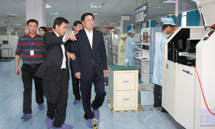 最后,钟利贵书记一行来到位于宝安的三诺电子高新科技园。当参观完三诺电子配备先进、极具竞争力设备的注塑部、SMT、组装部等生产车间,钟书记表示,通过这次的来访,对三诺的实力有了进一步地了解,今后,将继续加强九江与三诺的密切合作,更多地支持三诺在九江的发展,推动九江经济与三诺的共同腾飞。