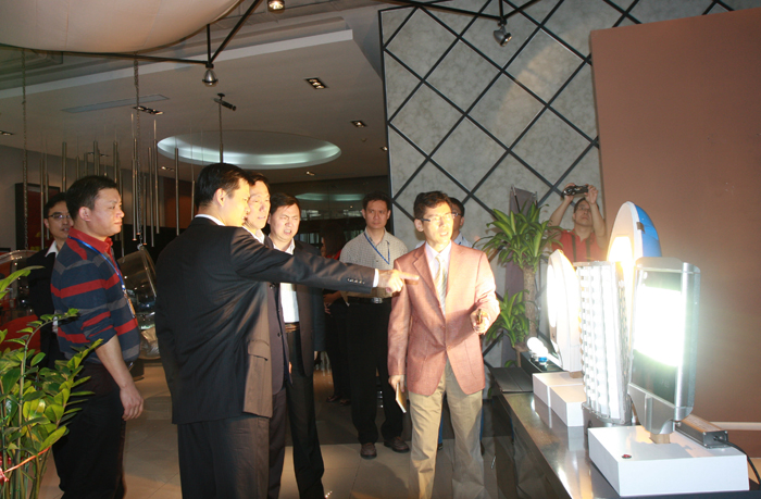 九江市市委书记钟利贵饶有兴致地驻足参观三诺的高效节能灯
