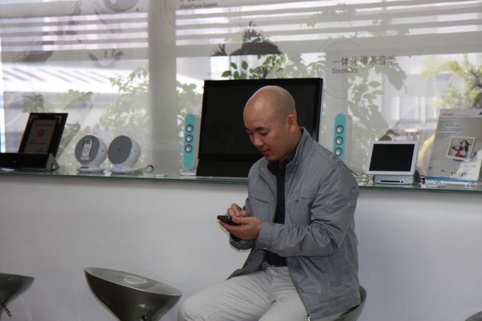 王永秘书长对三诺新颖的产品啧啧惊叹,当即用手机发送微博:“正在三诺参观,李菲副总裁介绍产品如数家珍。”