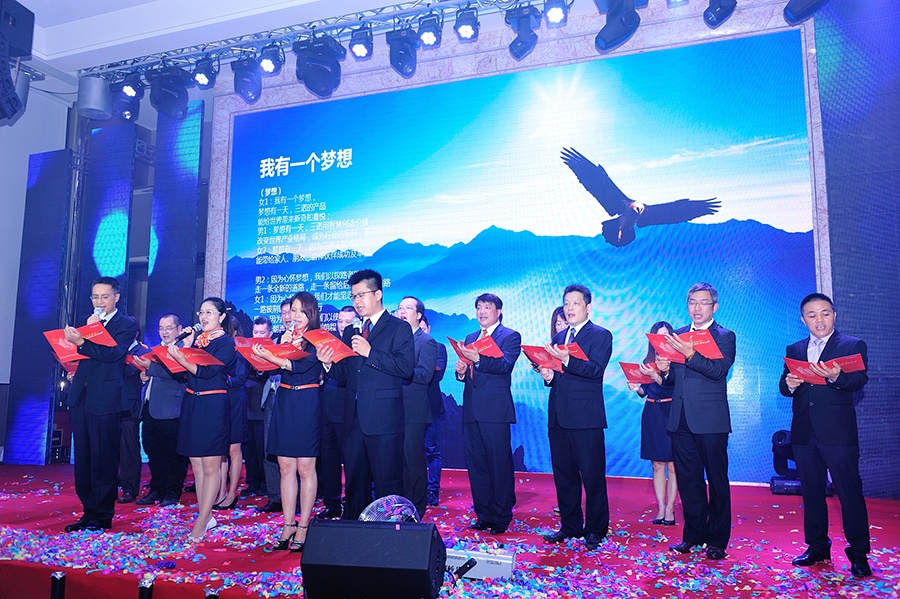 18位三诺中高层激情的进行诗朗诵《我有一个梦想》表演,抒发出三诺人的壮志豪情