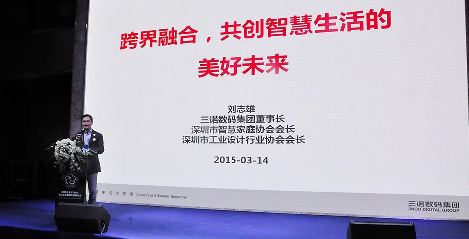 “下班回到家,推开屋门,只需轻轻说一声:‘打开客厅的灯。’客厅的灯立刻自动亮起;当你想听某位明星演唱的歌曲时,只需冲着智慧音响说一句,音响就会自动搜索播放……未来的家庭中,所有设备都可以用声音+操控,并能通过云端大数据的分析,为你自动推送理想的服务。” 3月14日,在三诺智慧大厦举办的“2015年全球EMBA智汇未来高峰会”上,深圳市智慧家庭协会会长、三诺集团董事长刘志雄向与会的近300位各行业领军人物及地产生态圈大咖描绘了三诺正在打造的未来智慧生活场景。