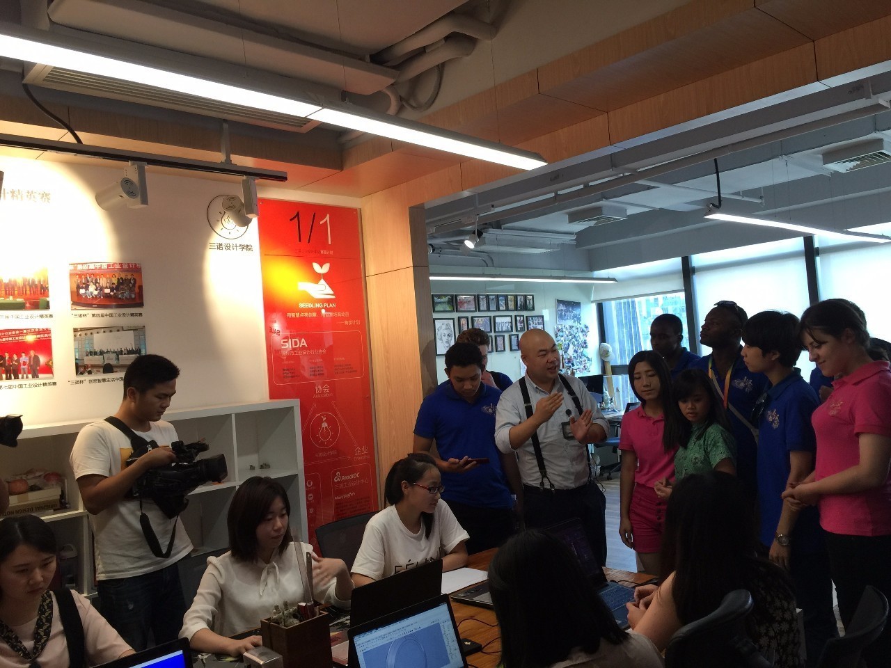 来自全国各地著名高校的设计专业学生们正在三诺工业设计中心麦锡设计学院实习,看到选手们的到来,学生们满怀友好,热情地向他们打招呼。