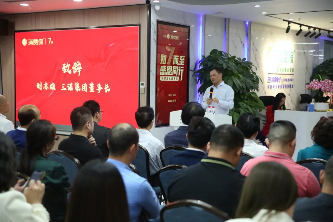 刘志雄董事长致辞,对消费保成立7周年表示热烈祝贺