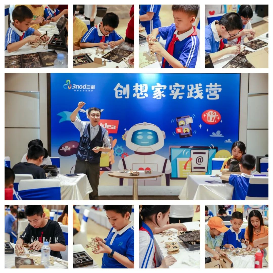 参观完创想馆后,三诺的宝贝们坐下来参加“创想家实践营”无人机研学活动。在中国地质大学深圳研究院专业老师的指导下,孩子们或独自或在爸妈的陪同下组装无人机,并成功进行试飞。活动不仅让孩子们体验了飞行乐趣,感受了无人机的科技与魅力,还培养了孩子们的工程师思维和科研精神,增强了动手能力,激发了创新创造能力。